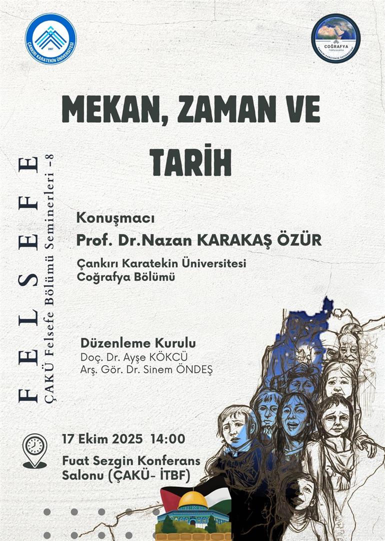 Mekan, Zaman ve Tarih Konulu Konferans 17 Ekim 2025 tarihinde Prof. Dr. Fuat Sezgin Konferans Salonunda Coğrafya Bölümü Öğretim üyelerinden Prof. Dr. Nazan KARAKAŞ ÖZÜR tarafından gerçekleştirilmiştir.